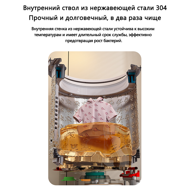 内桶采用食品级 304 不锈钢材质,耐高温不易变形,光滑内壁不易残留污渍和滋生细菌,长期使用依旧洁净如新。支持一键桶自洁功能,定期清洁内桶,避免二次污染,让每一次洗衣都更放心。