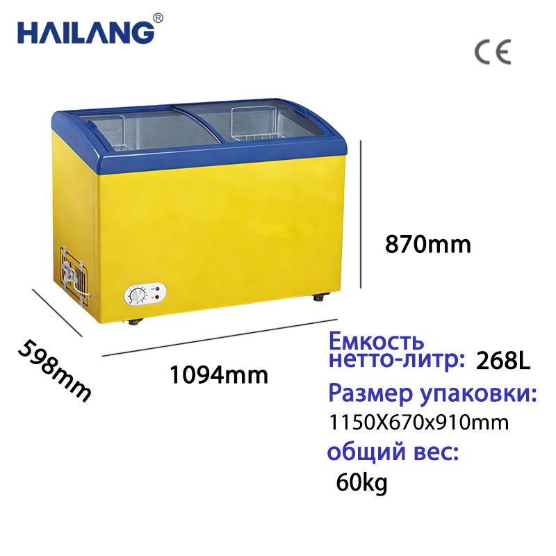 268L 超大容量,双弧形玻璃门卧式结构,仅占 0.65㎡空间,适配便利店、超市、小型商铺等场景,可集中展示冰淇淋、冷饮、零食等商品,透明门体兼具展示性与密封性,既能吸引顾客,又能减少冷气流失,提升保鲜效果。机械旋钮多档控温,可实现 - 18℃~10℃宽幅调节,冷藏 / 冷冻一键切换,操作简单易上手。