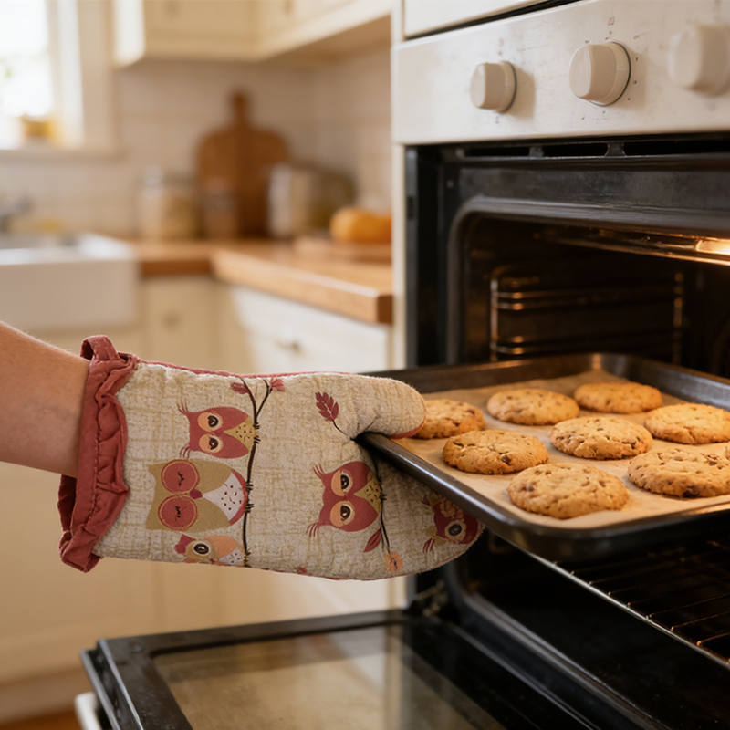 自制烘焙:安全地将热松饼、饼干或面包从烤箱中取出。