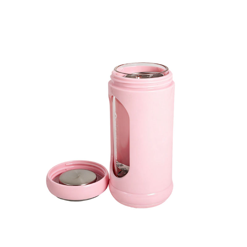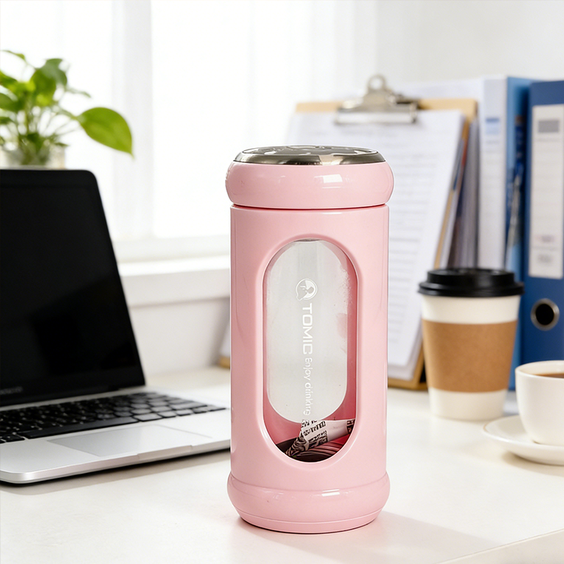 带滤芯玻璃水杯 奶油色便携随手杯 带挂绳旅行办公泡茶杯