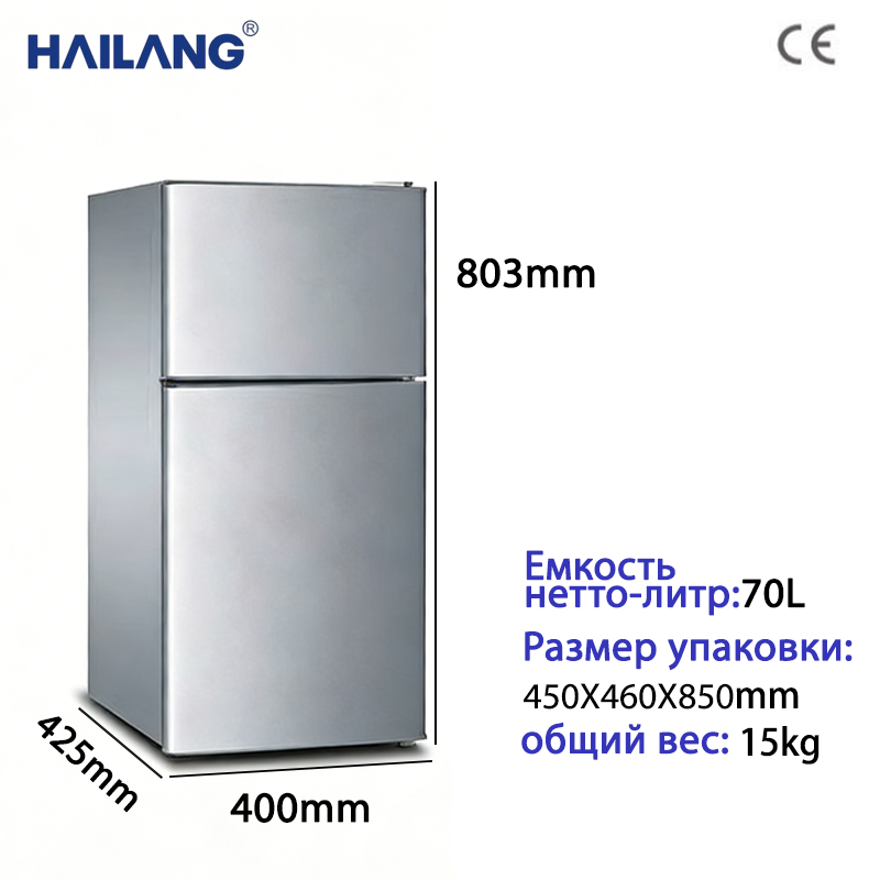 这款双门冰箱拥有 70 升的实用容量,上下分层设计可实现冷冻和冷藏分区存储,满足日常食材保鲜需求。它采用节能低耗设计,运行时噪音小,不会打扰你的生活与休息。