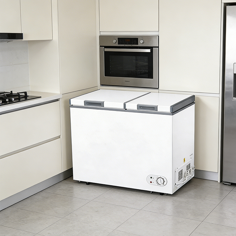 冷柜采用双温双门设计,总容量 252L,可实现冷藏与冷冻分区独立储存,既能保鲜蔬果、饮品等食材,也能冷冻肉类、速冻食品等物品,适配多口家庭日常及批量储物需求,也可用于小型商用场景的食品储存。