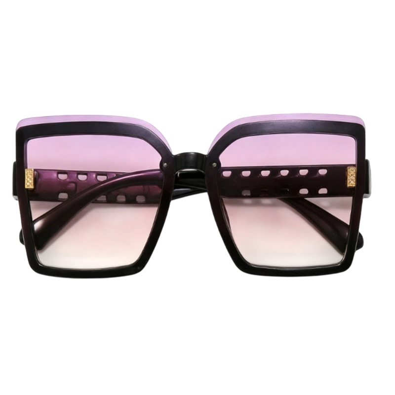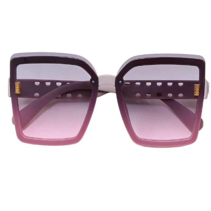 这款渐变紫粉大方形墨镜以渐变紫粉板材框搭配通透紫粉渐变镜片,镜架处的镂空孔洞与金属小标是点睛之笔,将个性前卫与精致细节巧妙融合。加宽的方形轮廓可柔和修饰脸部线条,适配潮拍出街、音乐节、派对等多种场景,风格适配个性、前卫、氛围感等不同穿搭。镜片具备专业防紫外线功能,有效阻隔紫外线伤害,兼顾时尚造型与眼部防护,镜架选材轻盈,佩戴舒适不压鼻,是兼具颜值与实用性的个性时尚配饰。