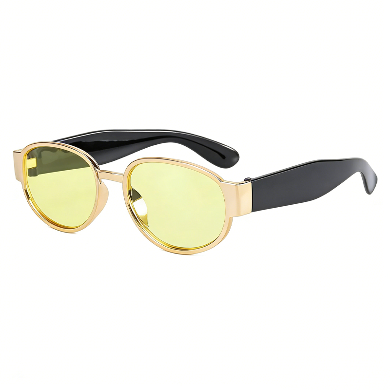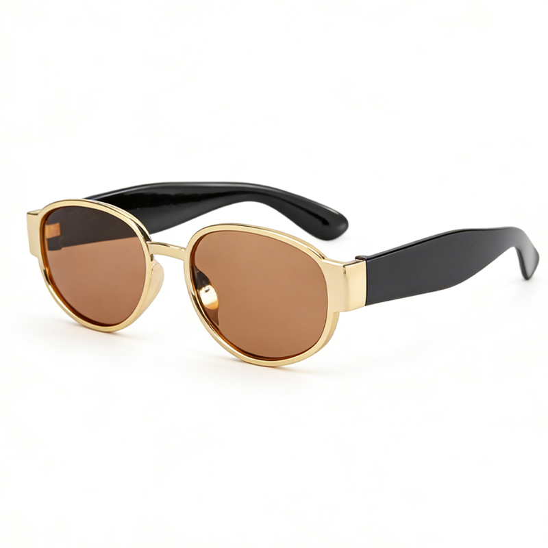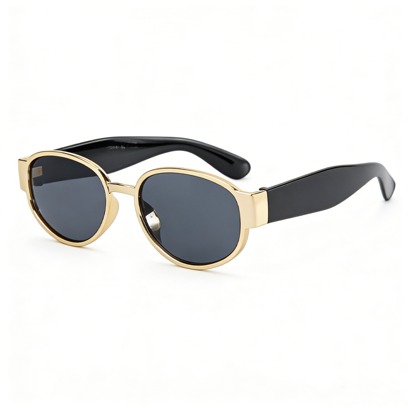 这款太阳镜采用轻奢金框椭圆设计,金属镜框搭配柔韧黑镜腿,兼具复古质感与轻奢风格,椭圆框型可修饰脸型,打造显脸小的视觉效果。镜片为偏光材质,具备 UV400 防护与防眩光功能,可有效阻隔紫外线、过滤强光,提升视野清晰度,多色镜片可选(黑 / 茶片)适配不同穿搭风格。镜架细节贴心:金属镜框稳固耐用,柔韧镜腿贴合耳型,佩戴舒适无压感,是日常通勤、出游防晒、复古造型的实用配饰。
