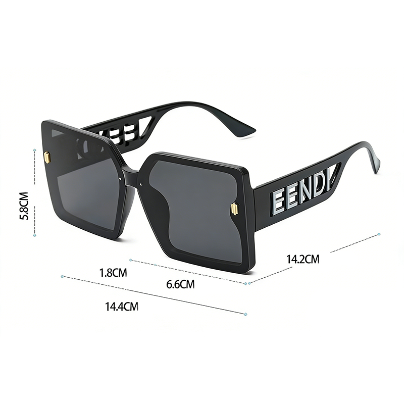 这款墨镜采用大框方形设计,镜腿融入镂空字母设计,兼具潮流感与辨识度,大框造型可修饰脸型,打造显脸小的视觉效果。镜片为偏光材质,具备 UV400 防护功能,可有效阻隔紫外线、过滤强光,提升视野清晰度。镜架细节贴心:轻量材质搭配优质弧形镜腿,佩戴稳固贴合无压感,是日常通勤、街拍造型、时尚穿搭的实用配饰。
