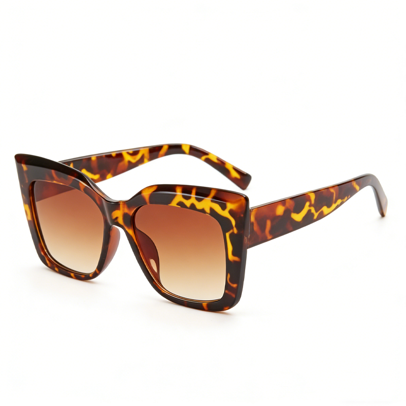 这款太阳镜采用复古大框造型,搭配经典玳瑁纹镜身,兼具复古质感与时尚气息,大框设计可修饰脸型,轻松打造显脸小的视觉效果,适配度假、出游、街拍等多种场景。镜片具备 UV400 防护功能,可有效阻隔紫外线,强光下也能保持清晰视野,兼顾美观与实用。镜架材质轻盈柔韧,镜腿贴合耳型,长时间佩戴不易压鼻夹耳,细节做工精致,质感细腻,是日常防晒与造型搭配的必备配饰。
